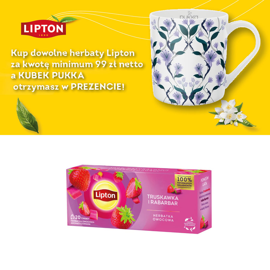 Kup dowolne herbaty Lipton za kwotę minimum 99 zł netto a kubek PUKKA otrzymasz w PREZENCIE!