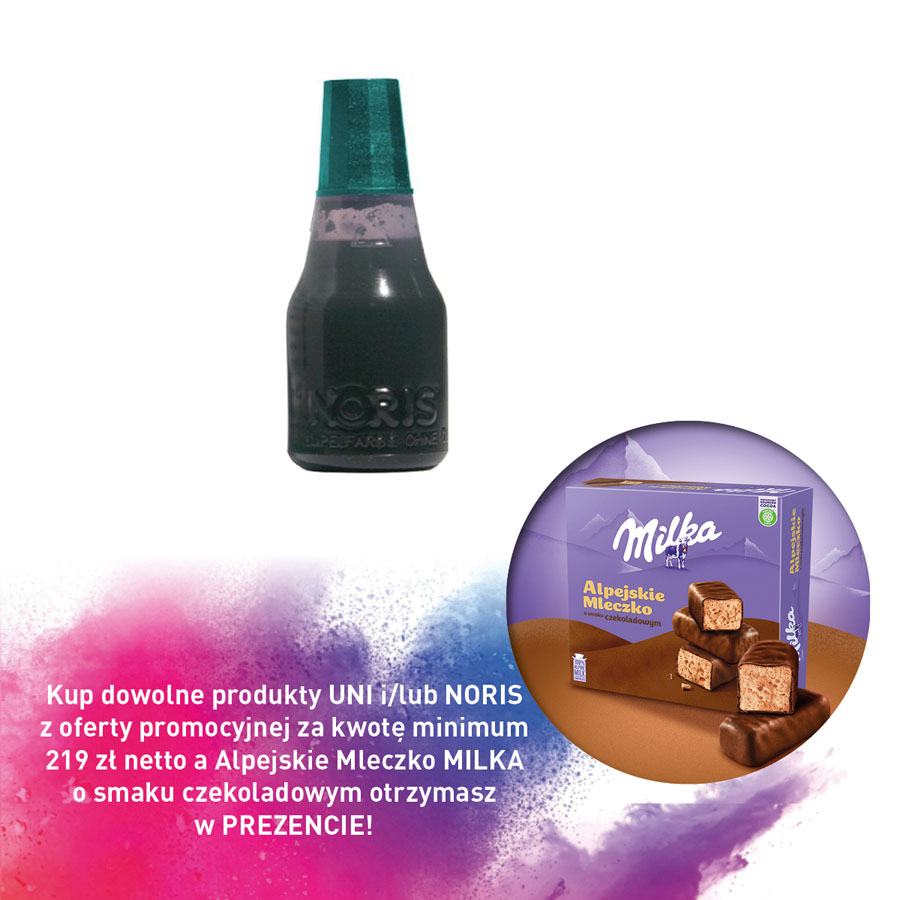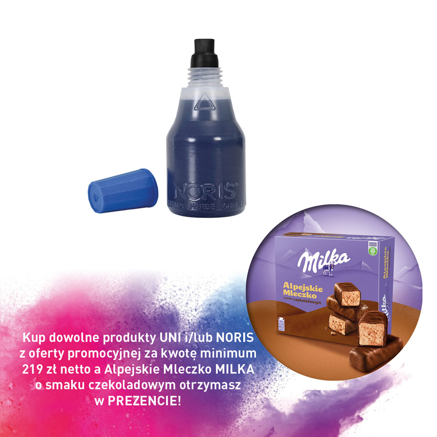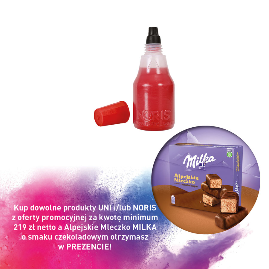 Kup dowolne produkty UNI i/lub NORIS z oferty promocyjnej za kwotę minimum 219 zł netto a Alpejskie Mleczko MILKA o smaku czekoladowym otrzymasz w PREZENCIE!