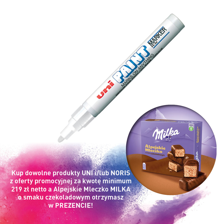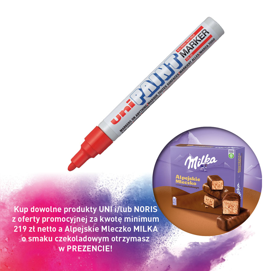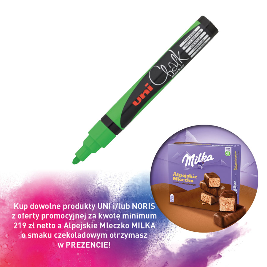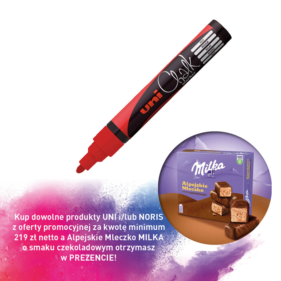 Kup dowolne produkty UNI i/lub NORIS z oferty promocyjnej za kwotę minimum 219 zł netto a Alpejskie Mleczko MILKA o smaku czekoladowym otrzymasz w PREZENCIE!