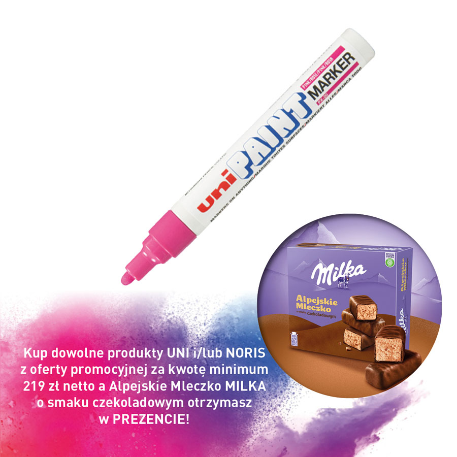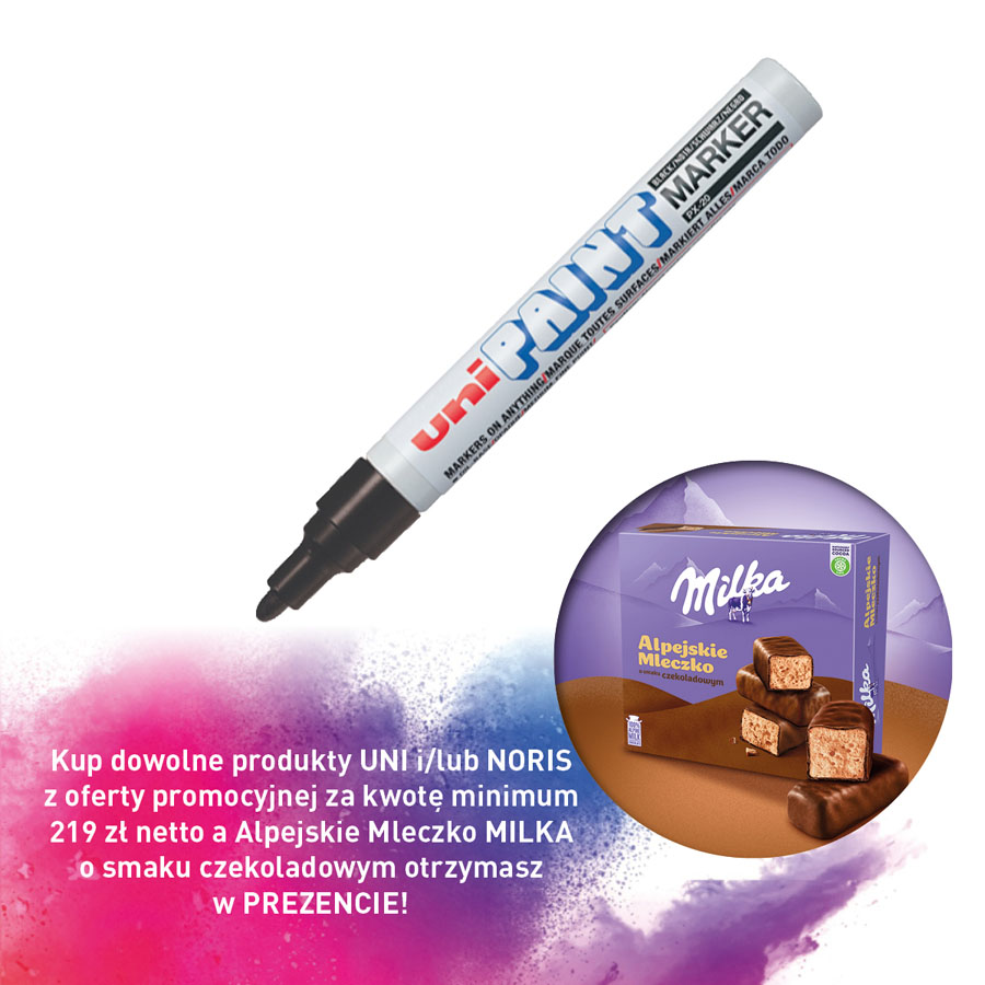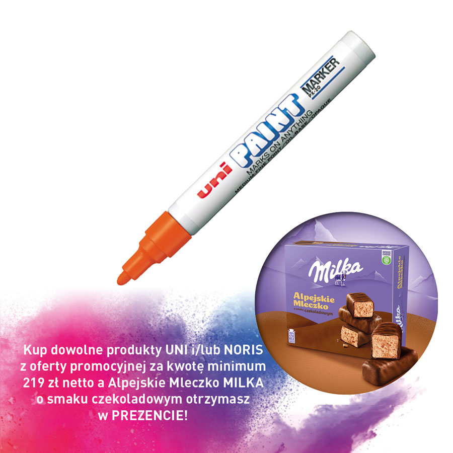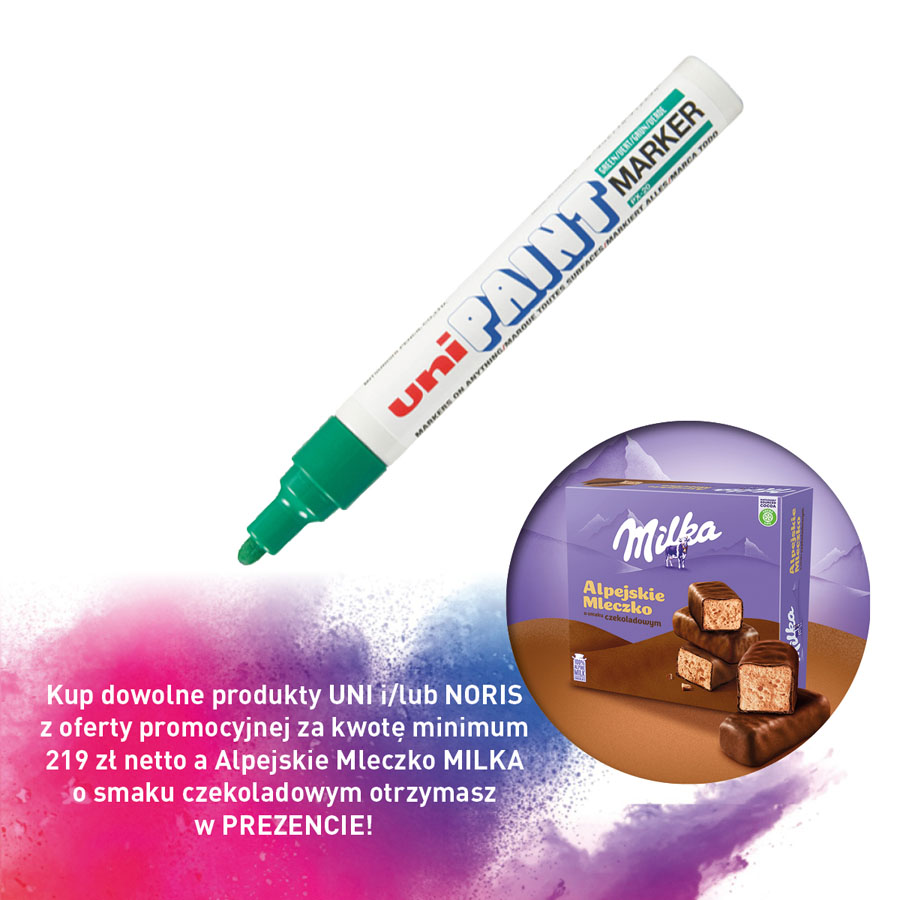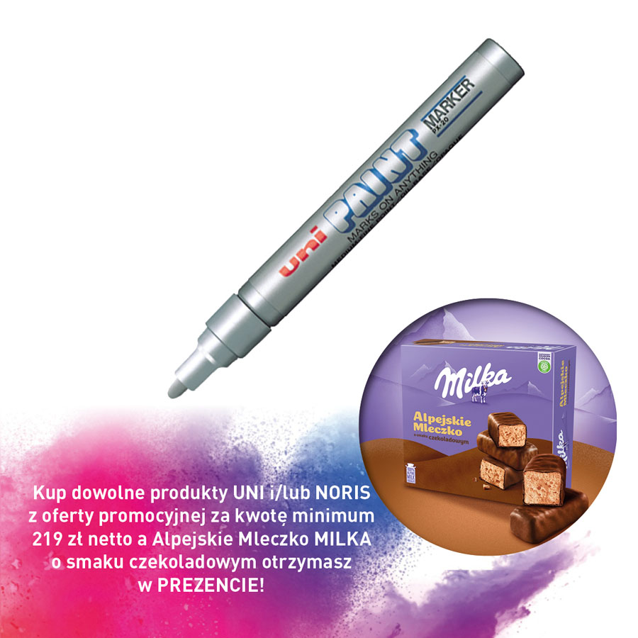 Kup dowolne produkty UNI i/lub NORIS z oferty promocyjnej za kwotę minimum 219 zł netto a Alpejskie Mleczko MILKA o smaku czekoladowym otrzymasz w PREZENCIE!