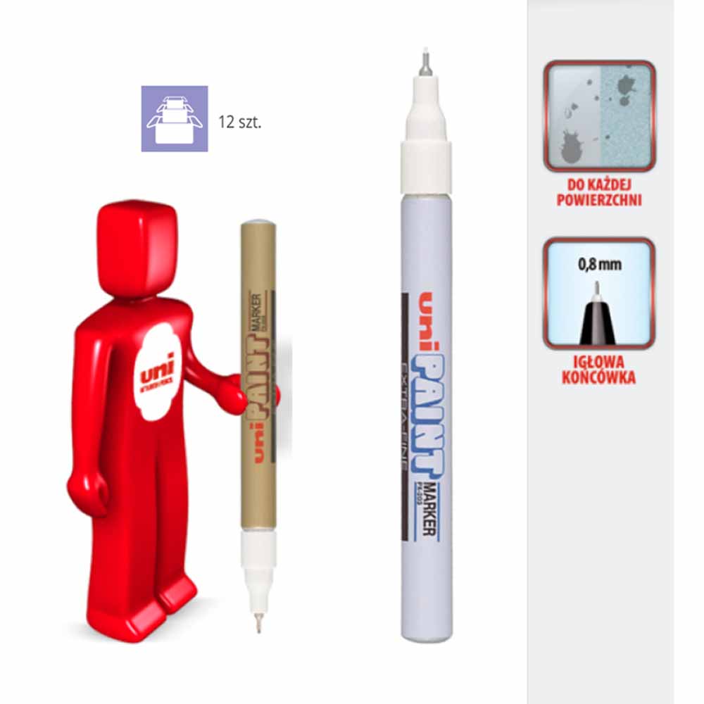 Marker wyposażony jest w okrągłą fibrową końcówkę, która zapewnia równomierne i precyzyjne oznaczenia. Końcówka pompująca pozwala na płynne pisanie, eliminując przerwy w pracy i gwarantując komfort użytkowania.