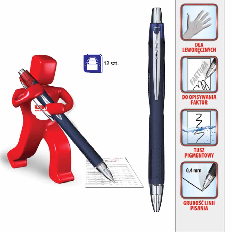 Pióro posiada całkowicie gumowaną obudowę, która zapewnia ergonomiczny uchwyt i komfort pisania przez dłuższy czas, zapobiegając zmęczeniu dłoni.