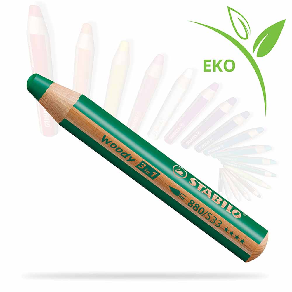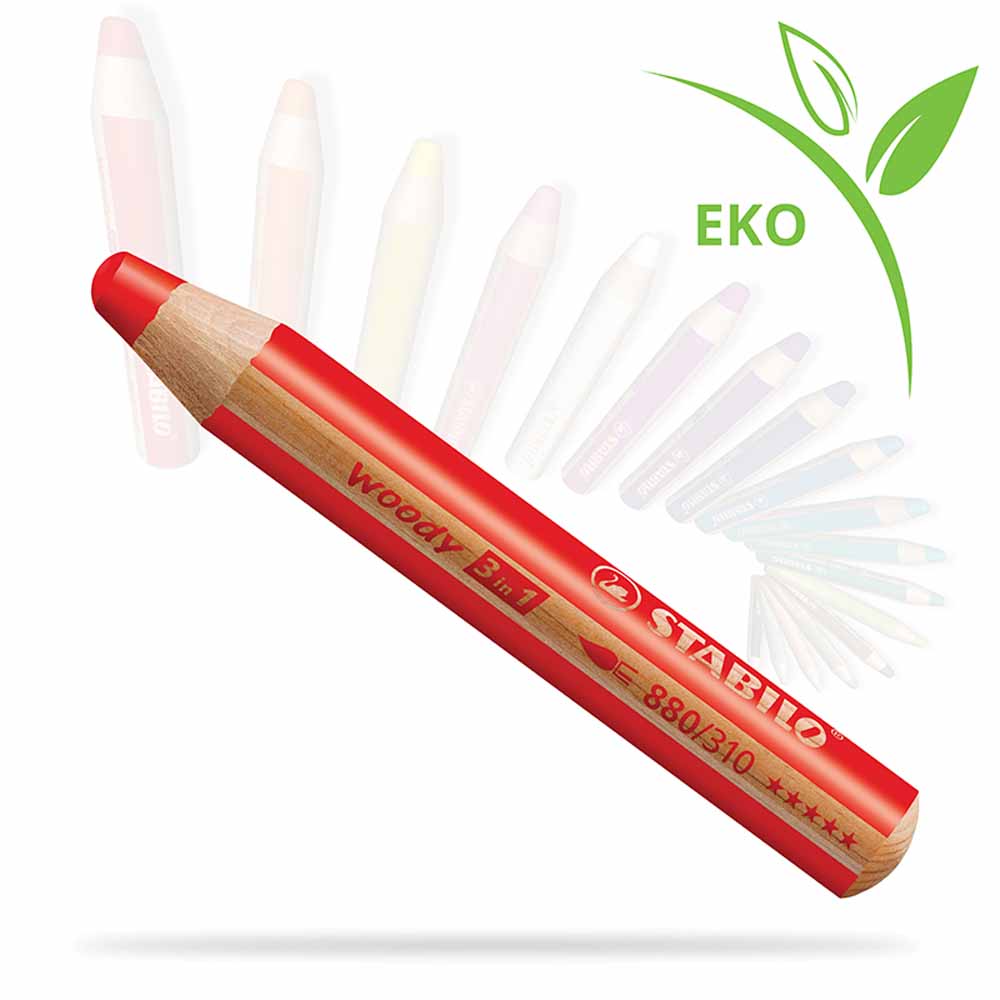 Zestaw kredek specjalistycznych STABILO woody 3 w 1 to wyjątkowe połączenie zwykłych kredek, kredek akwarelowych i woskowych, które sprawdzi się w każdej technice malarskiej. Każda kredka wyposażona jest we wkład w rozmiarze XXL, odpowiadający aż 8 standardowym kredkom, co pozwala na szybkie i łatwe pokrycie dużych powierzchni kolorem.