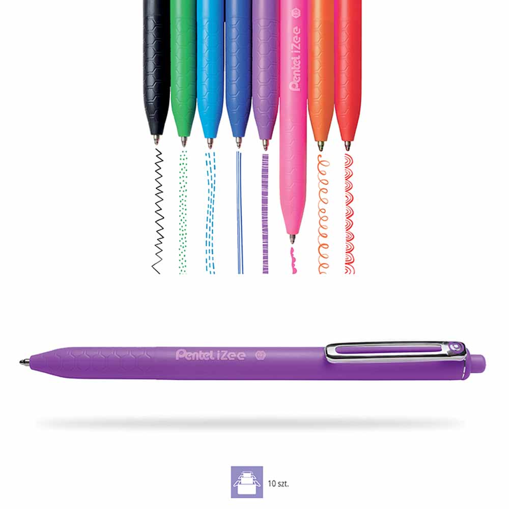 Długopis automatyczny Pentel BK437 został zaprojektowany z myślą o maksymalnym komforcie użytkowania. Wygodny gumowy uchwyt w kolorze tuszu zapewnia pewny chwyt i zapobiega wyślizgiwaniu się długopisu z dłoni, co umożliwia długotrwałe pisanie bez zmęczenia.