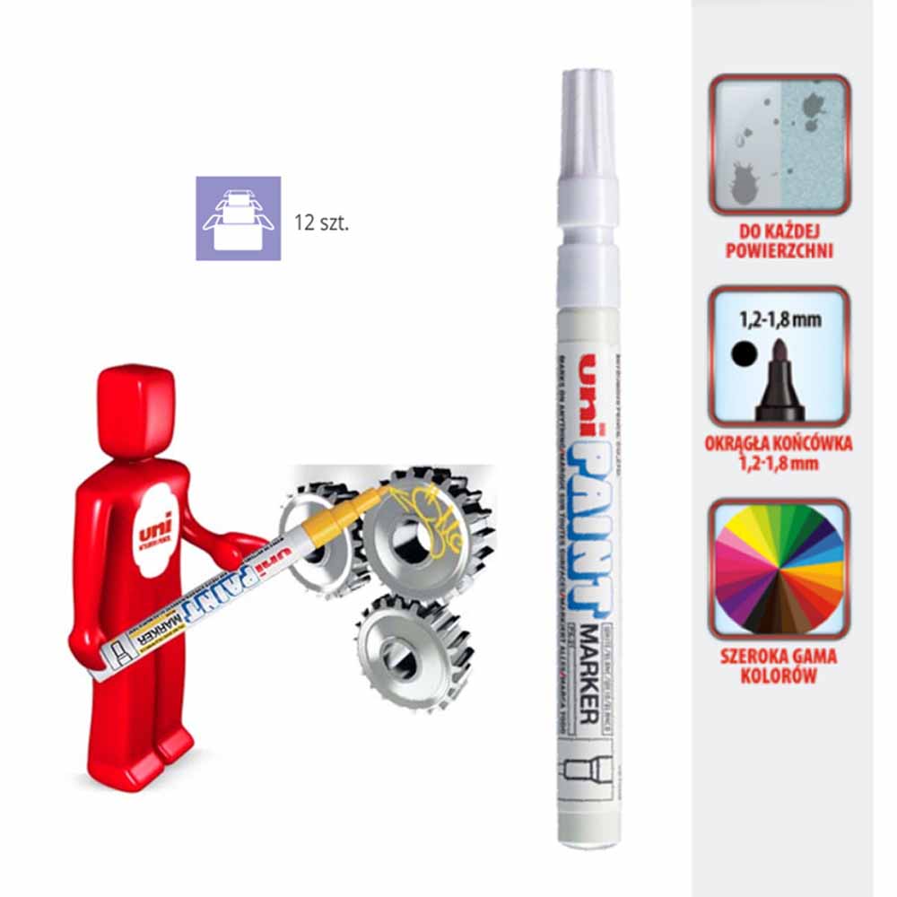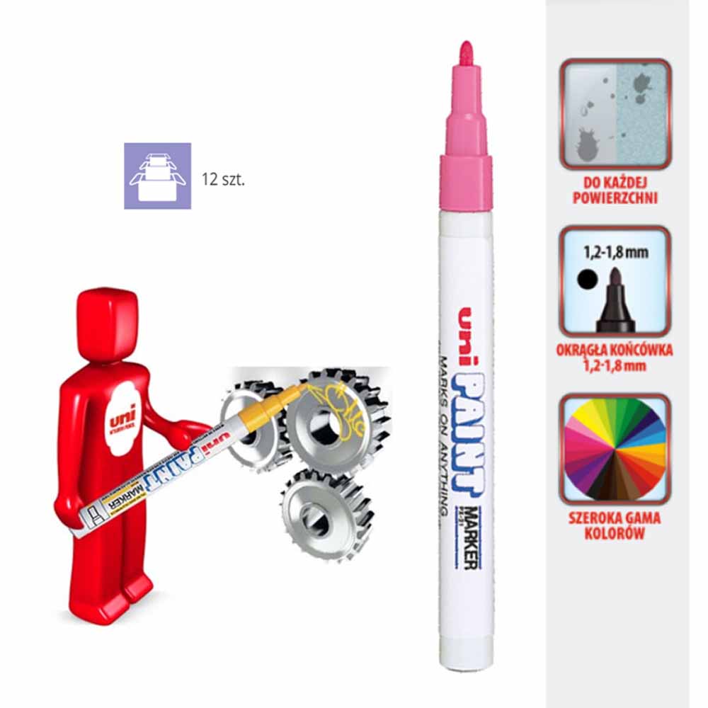 marker olejowy do trwałego, wysoce kryjącego znakowania nawet ciemnych i przezroczystych materiałów, np. metalu, szkła i plastiku okrągła końcówka pisząca o grubości 2-4 mm tusz przypominający farbę jest szybkoschnący, odporny na działanie warunków atmosferycznych, wyjątkowo odporny na działanie światła i ścieranie odporny na temperatury do 400°C zapasowe końcówki (wymienne końcówki do edding 750) są dostępne bezwonny tusz bez dodatku toulenu/ksylenu grubość linii pisania: 2-4 mm kolor: czerwony