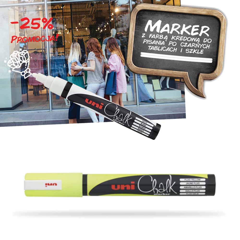 - marker z wysokiej jakości tuszem kredowym do stosowania na szkle i innych gładkich powierzchniach