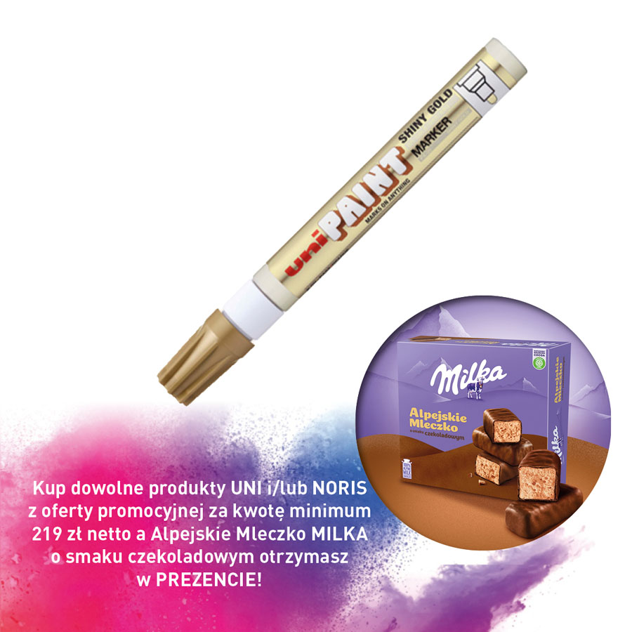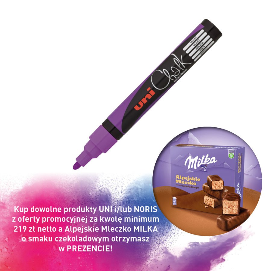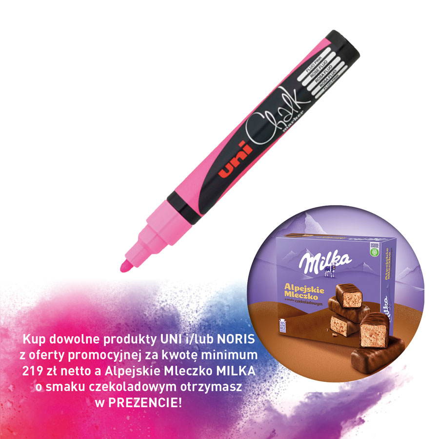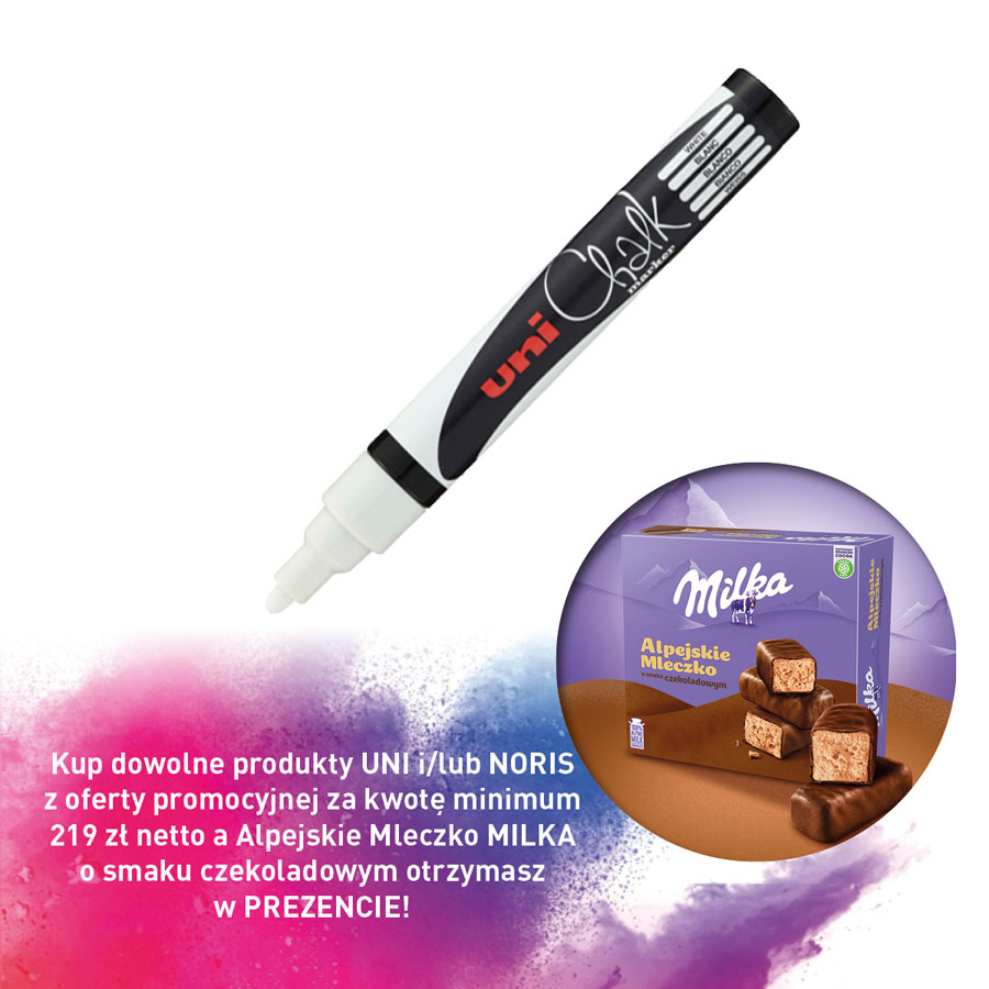 Kup dowolne produkty UNI i/lub NORIS z oferty promocyjnej za kwotę minimum 219 zł netto a Alpejskie Mleczko MILKA o smaku czekoladowym otrzymasz w PREZENCIE!