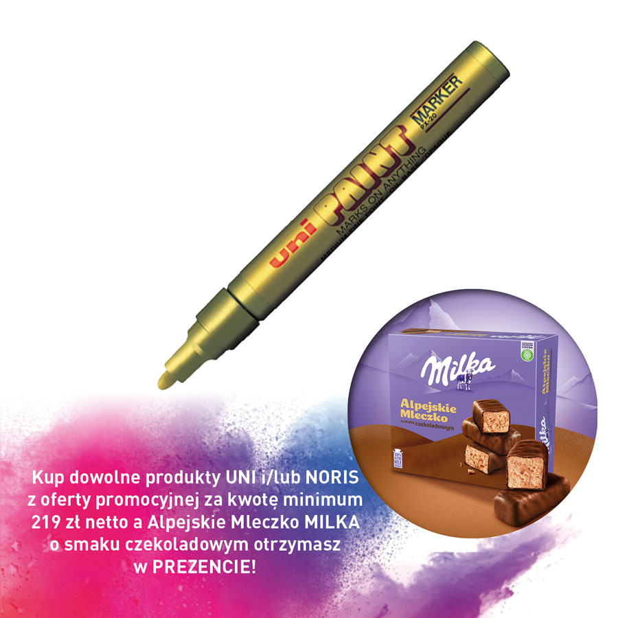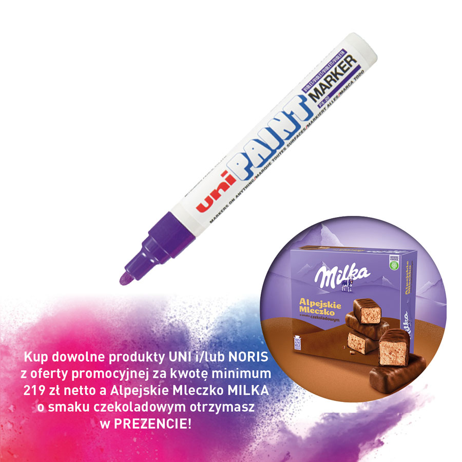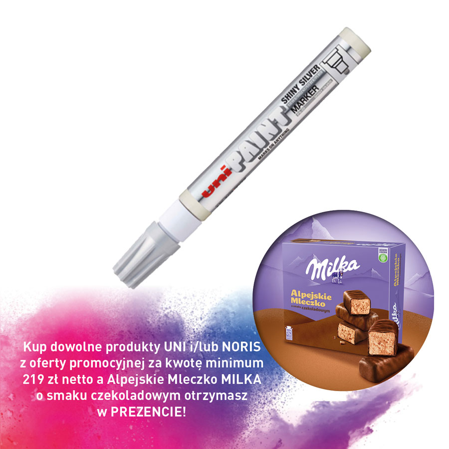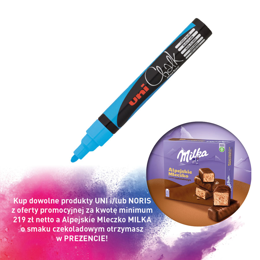 Kup dowolne produkty UNI i/lub NORIS z oferty promocyjnej za kwotę minimum 219 zł netto a Alpejskie Mleczko MILKA o smaku czekoladowym otrzymasz w PREZENCIE!