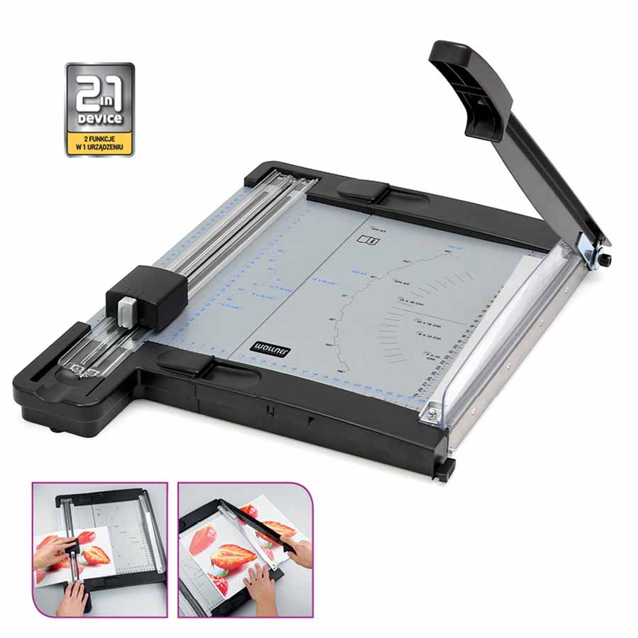 Gilotyna RC 321 N posiada kompaktowe wymiary blatu (320×190 mm), co czyni ją idealnym narzędziem do małych przestrzeni biurowych. Solidna konstrukcja i dwuletnia gwarancja gwarantują długotrwałe i bezproblemowe użytkowanie.
