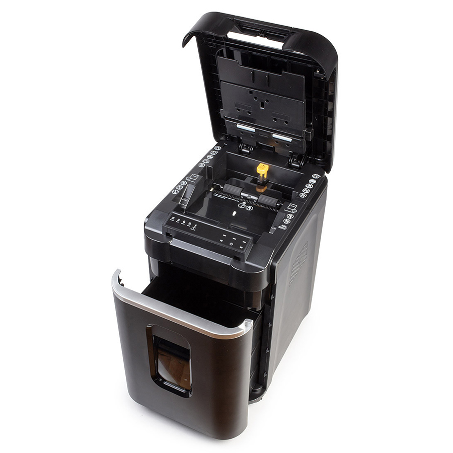 Dzięki dotykowemu panelowi sterowania oraz wskaźnikom LED użytkownik ma pełną kontrolę nad procesem niszczenia. Niezawodne noże z hartowanej stali oraz stalowe separatory zapewniają skuteczność cięcia, także w przypadku dokumentów ze zszywkami czy spinaczami.