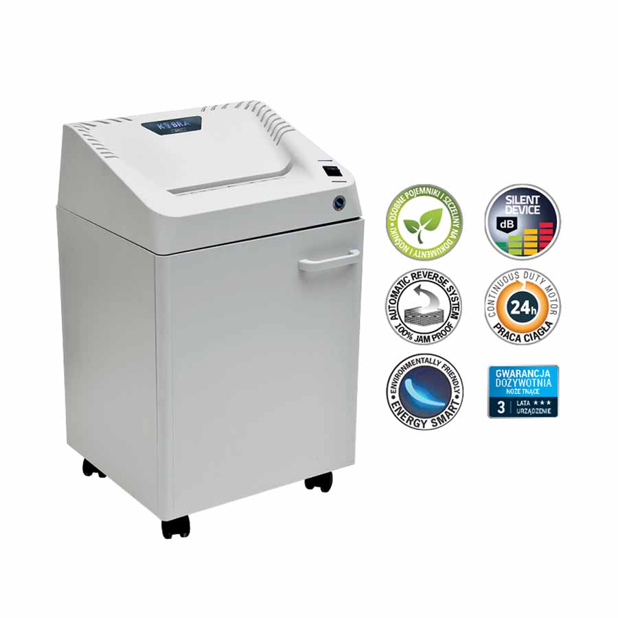 W trybie automatycznym urządzenie może pracować nieprzerwanie przez 60 minut, co pozwala na szybkie i efektywne niszczenie większej ilości dokumentów bez konieczności ciągłej obsługi. Wystarczy załadować stos zbędnych dokumentów, a niszczarka wykona całą pracę samodzielnie, oszczędzając czas i zwiększając komfort użytkowania.